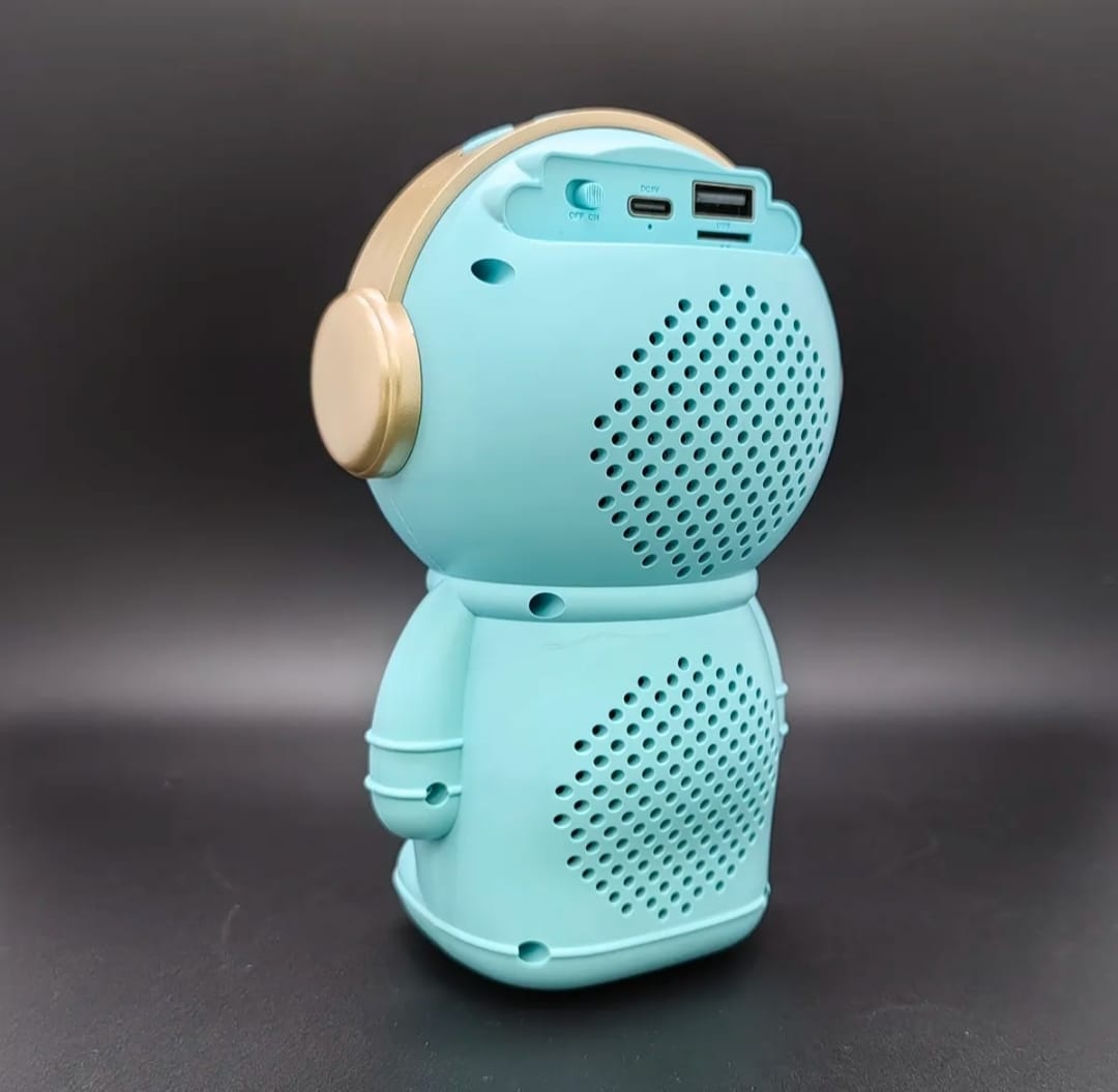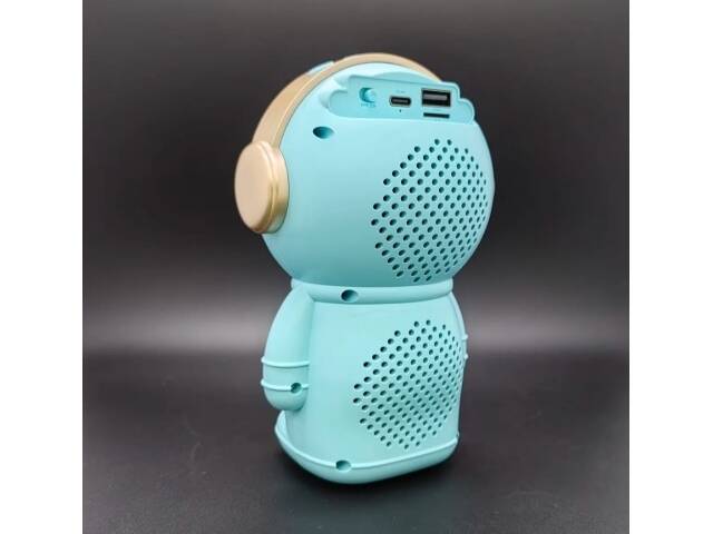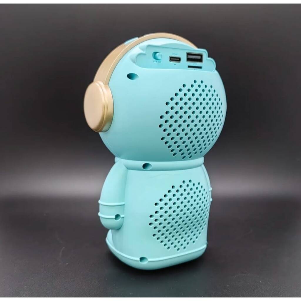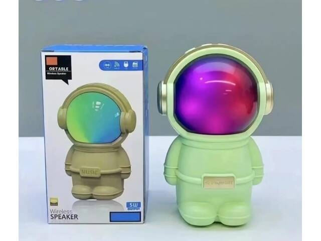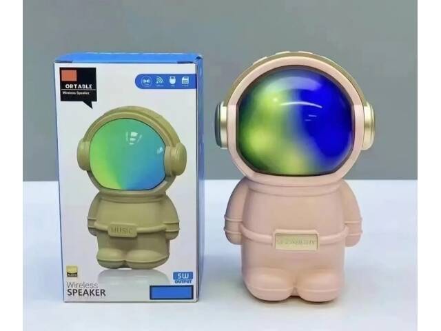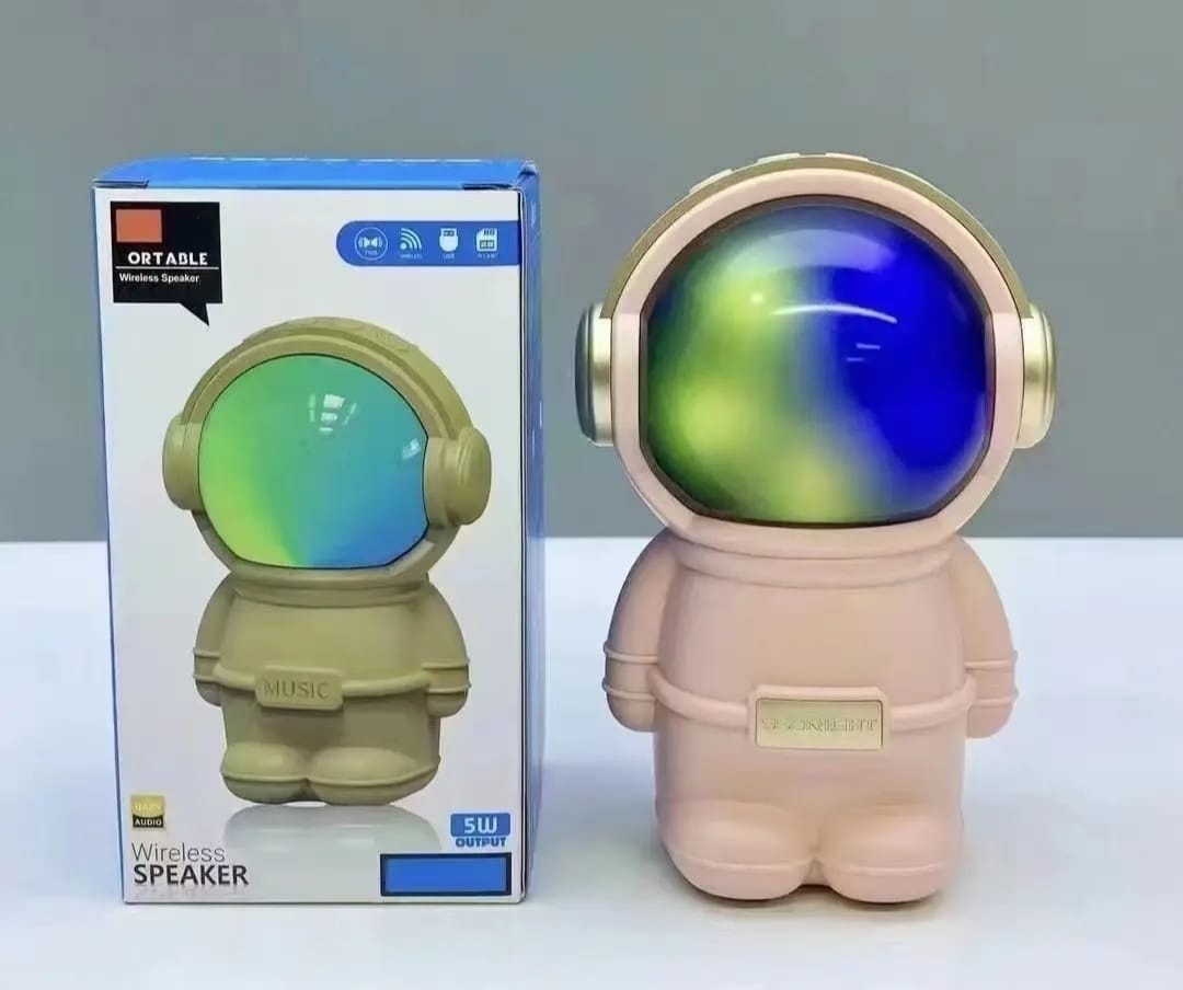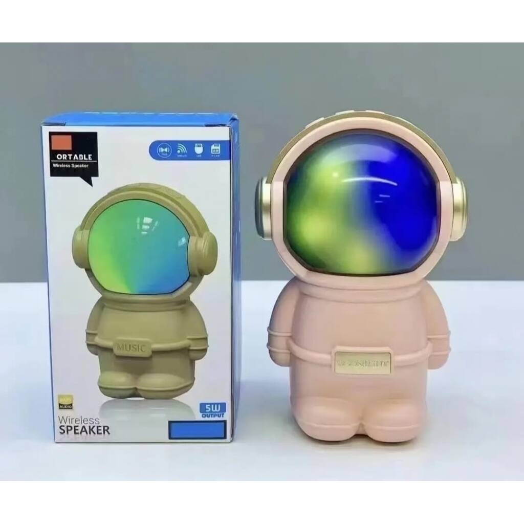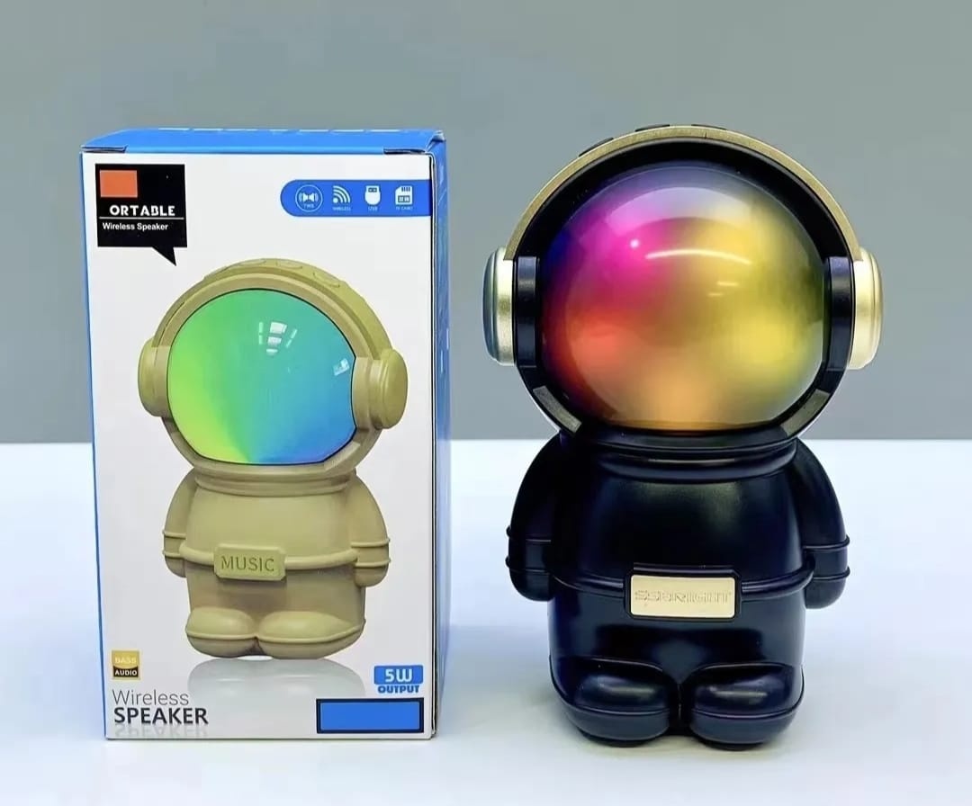 Hermoso parlante con forma de astronauta. Se conecta a tus equipos via bluetooth, tambien tiene radio fm incorporada o la posibilidad de que le agregues tu musica preferida mediante conexion usb o tarjeta de memoria micro SD. Tiene luces las cuales puedes encender, cambiar su secuencia o apagar. Muy buen sonido estéreo. Medidas 15 cm alto, 10 cm ancho, 9 cm profundidad.