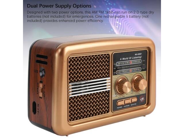 Radio CMIK 499 BT. Con estilo antiguo pero muy moderna esta radio cuenta con Bluetooth, Am, Fm, Sw, conexion para pendrive o tarjeta de memoria. Linterna incorporada. Bateria recargable, conexion a corriente 220v o pilas. No trae pilas, incluye bateria recargable y cable a la corriente. Tamaño 20 cm ancho, 13 cm alto, 8 cm profundidad.