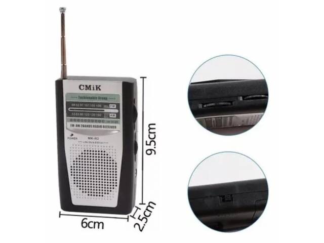 Radio cmik mk r2. Compacta con parlante. AM, FM funciona con 2 pilas AAA. Conexión para auriculares.