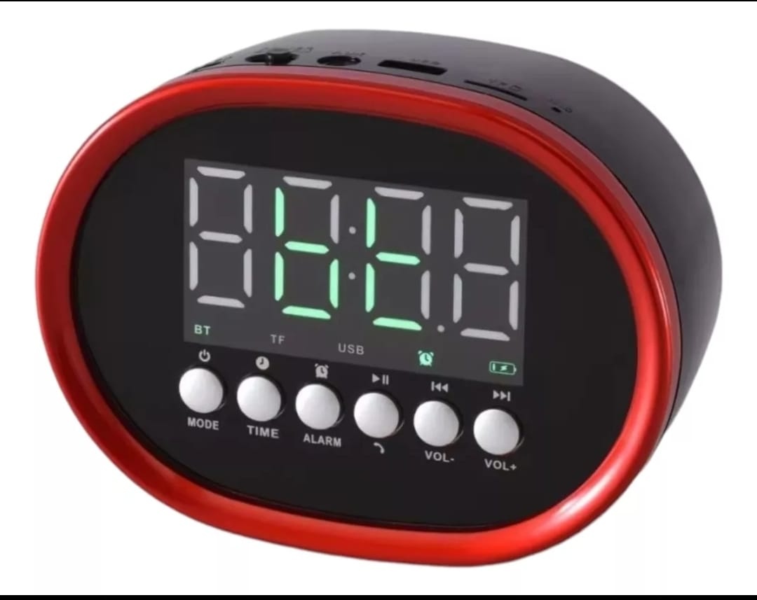 Radio reloj Cmik MK-204. Radio fm, reproductor de MP3 USB o tarjeta micro SD. Bluetooth. Despertador. Bateria recargable incorporada. Cable micro USB incluido. Números color verde.