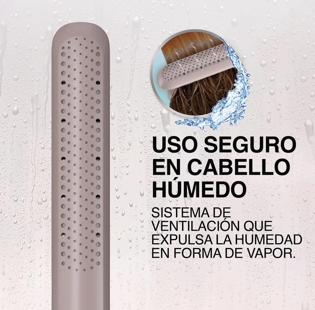 Uso seguro en cabello húmedo y seco. Sistema de ventilación que expulsa la humedad en forma de vapor