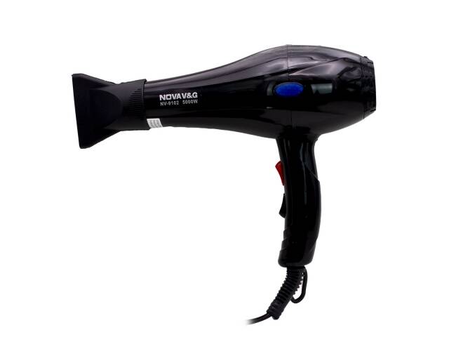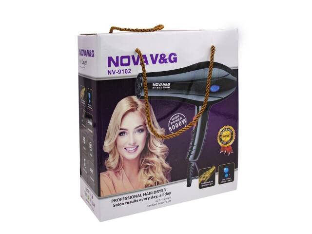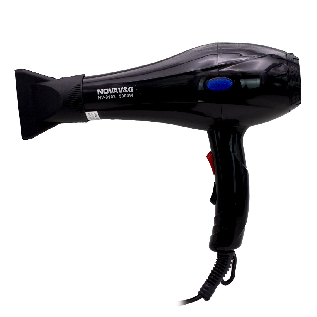 Secador De Pelo Profesional NOVA NV-9102, un dispositivo de alto rendimiento y potencia 5000W. Con un tamaño compacto de 24cm, es fácil de manejar y perfecto para llevar de viaje. Cuenta con un filtro trasero que ayuda a mantener el motor limpio y prolongar su vida útil. Ofrece la opción de aire frío y caliente, permitiendo adaptarse a tus necesidades de peinado. Con su control de 2 posiciones de velocidad y 3 de temperatura, puedes personalizar el flujo de aire y el calor según tu preferencia. El largo del cable de 1.10m proporciona suficiente movilidad para un peinado cómodo. Viene con un difusor incluido en el set, ideal para agregar volumen a tu cabello y definir tus rizos. A pesar de su potencia, el secador mantiene un nivel de ruido moderado, lo que hace que su uso sea más agradable.