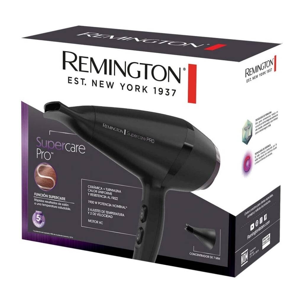 Secador Remington D23A, Secador de cabello profesional, Secador con motor AC, Secador con cerámica y turmalina, Secador de pelo potente, Secador con función Supercare, Secador para resultados de salón, Secado rápido y saludable, Secador infrarrojo Remington, Secador con rejilla cerámica, Secador con control de temperatura, Secador con filtro removible. Secador Remington D23A con motor AC, Secador profesional con turmalina y cerámica, Secador de cabello 2100W con función Supercare. Mejor secador Remington para uso en casa, Secador para peinados rápidos y saludables, Secador con concentrador de 7 mm, Secador con cable largo y gancho para colgar.