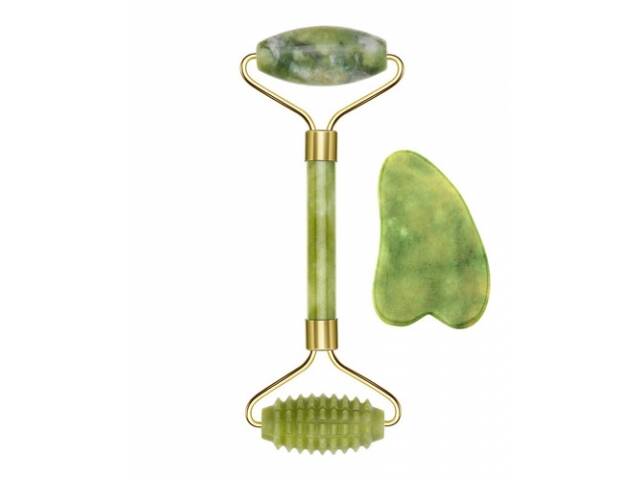 ¡¡Atencion!! Es piedra. Masajeador facial en piedra Jade. Disminuye arrugas. Ayuda a reducir la hinchazon mejorando la circulación. Promueve el drenaje linfático.