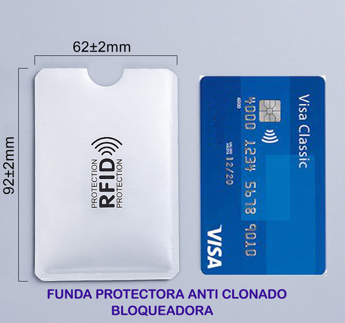 Sobre protector de tarjeta débito o crédito. Evita que le puedan leer la tarjeta sin contacto. Bloqueador RFID. RFID (Identificación por Radiofrecuencia) es una tecnología que usa ondas de radio para identificar tarjetas, rastrear objetos, personas o animales de forma automática y a distancia.