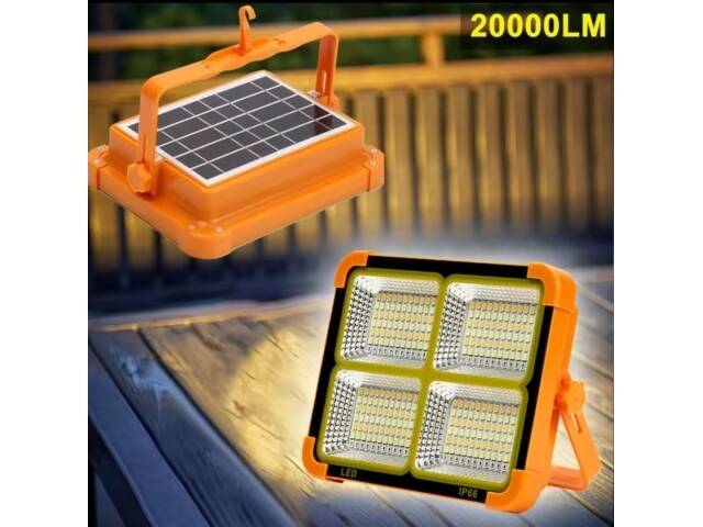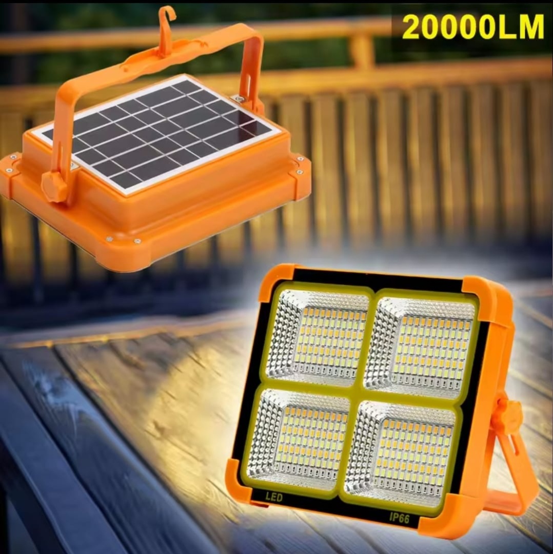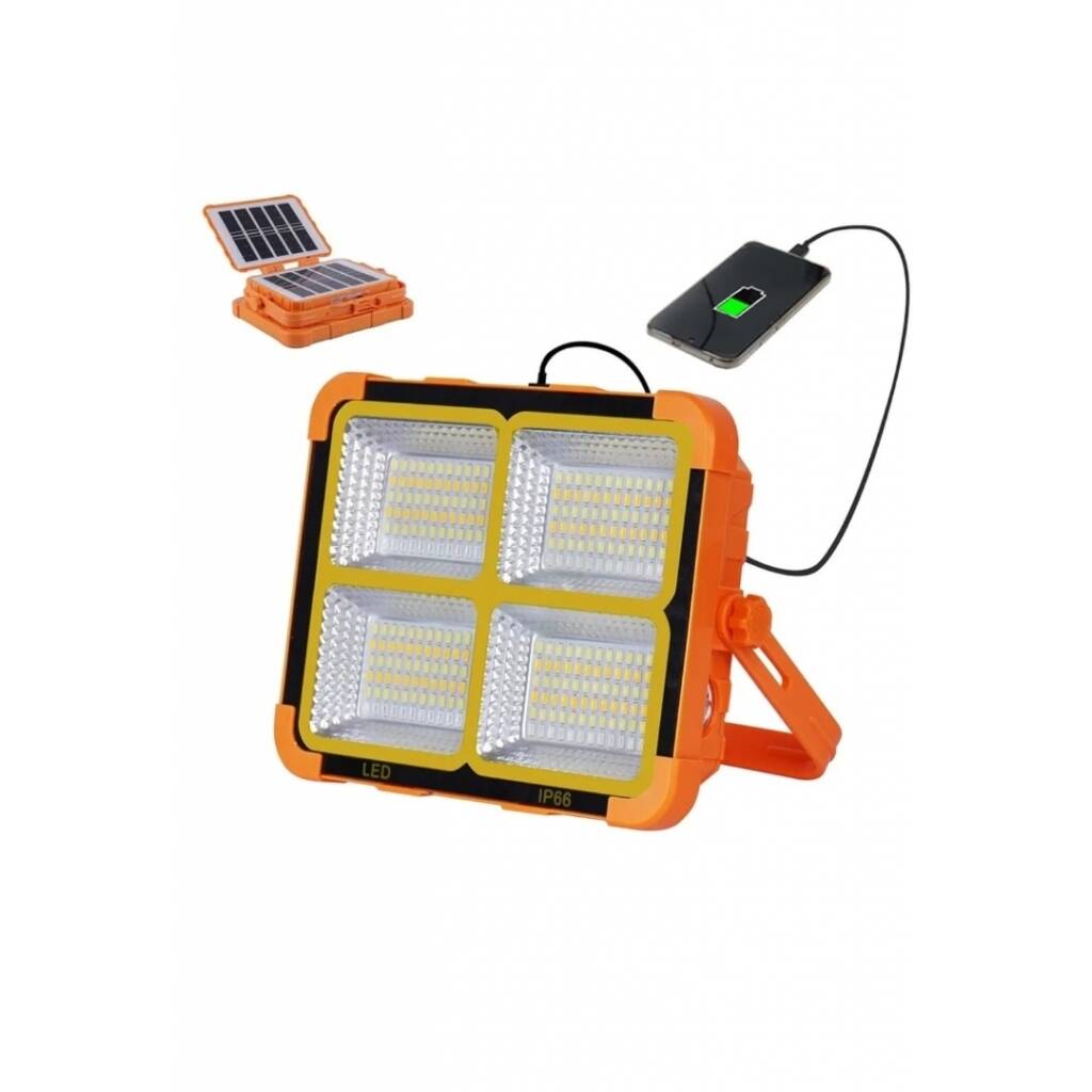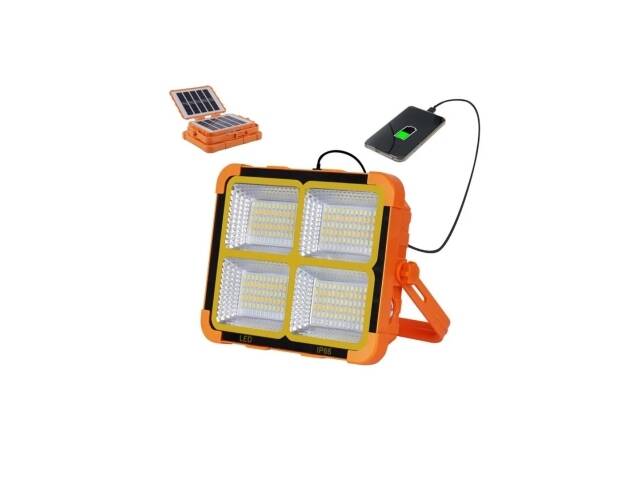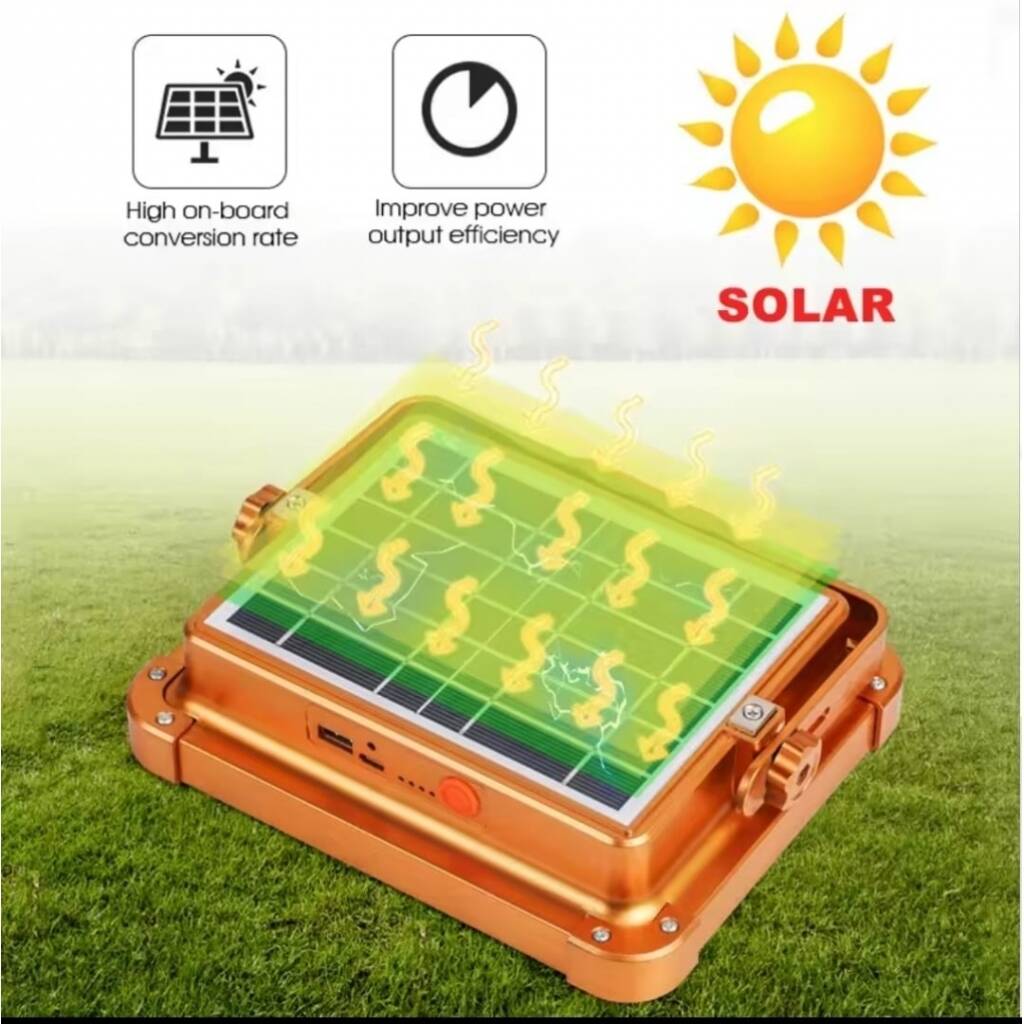 Foco led con panel solar. Luz led fria, cálida, y azul y roja que alternan simil a una sirena. Tambien puede recargar cualquier articulo con conexion USB.