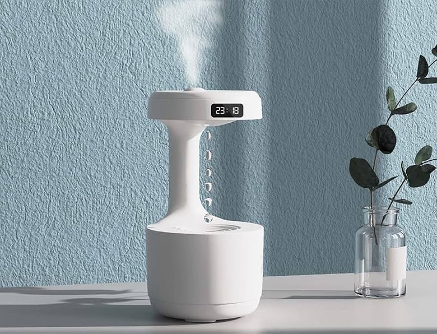 - Utiliza elementos ópticos para crear una ilusión antigravedad, lo que hace que las gotas de agua fluyan lentamente hacia arriba