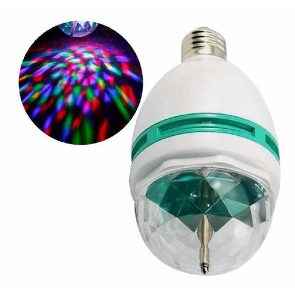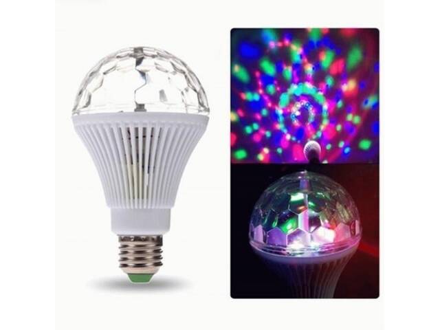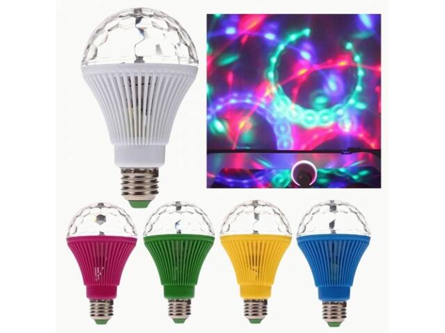 Lámpara giratoria led rgb. Con tan solo una lamparita ambientas tu fiesta. Bajo consumo ya que es lamparitas de led. Compatible con cualquier portalamparas comun.