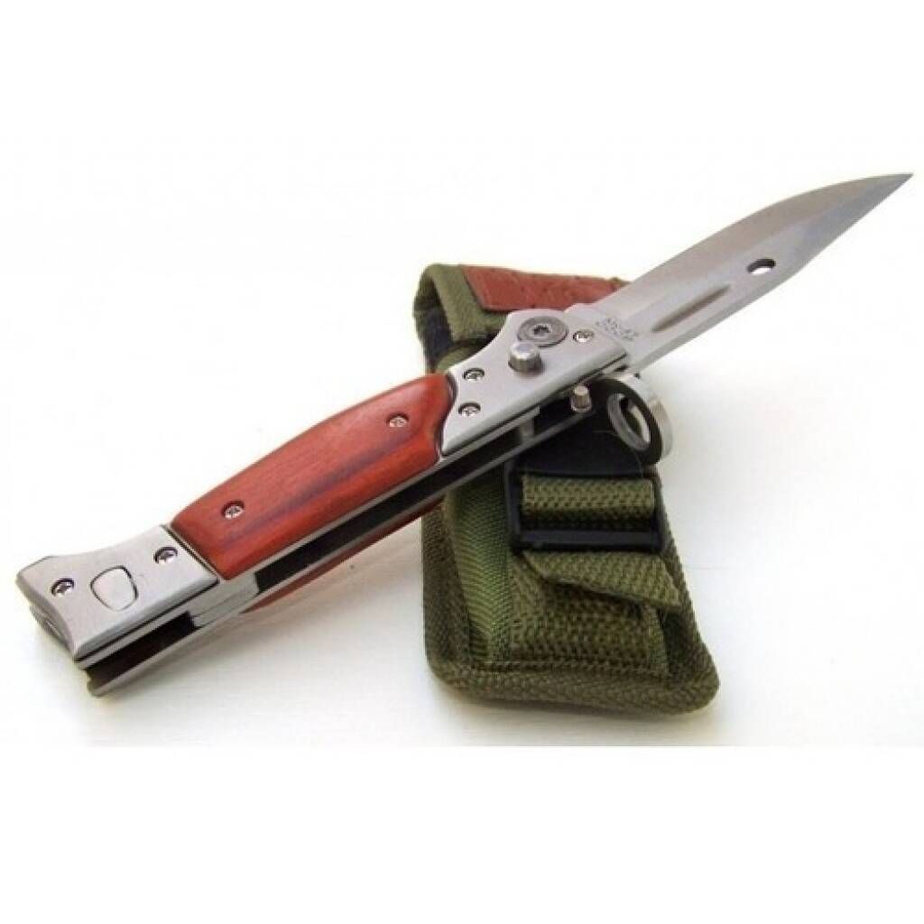 Navaja bayoneta ak47ch. Tamaño 22 cm desplegada. Cerrada 12 cm. Incluye funda de tela.