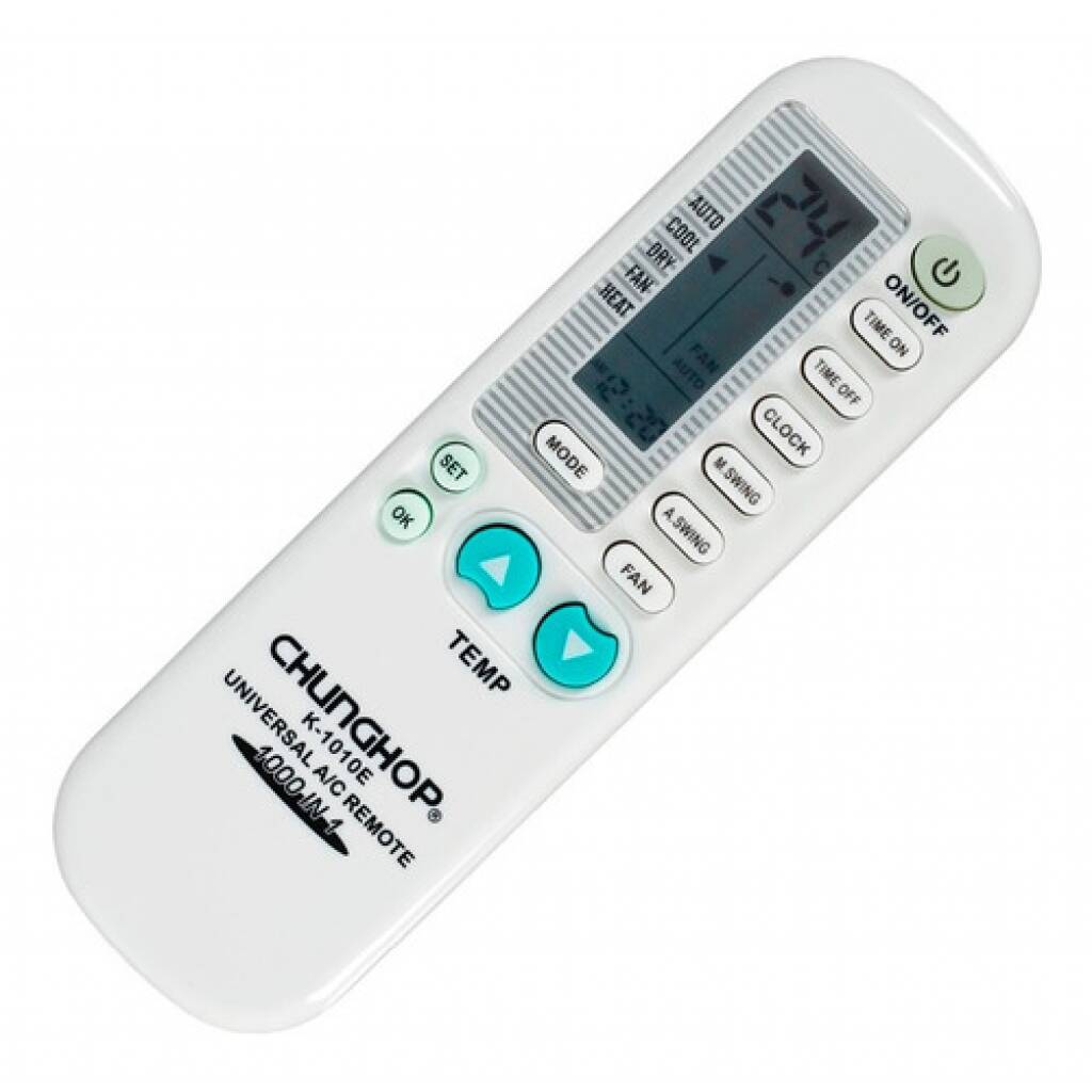 Control remoto universal para aire acondicionado. Fácil programación. Compatible con todas las marcas. Chunghop es el mayor fabricante de controles remotos.