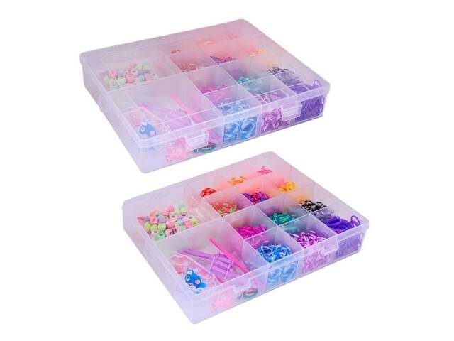 Material: Valija: ABS, cuentas y gomitas elasticas