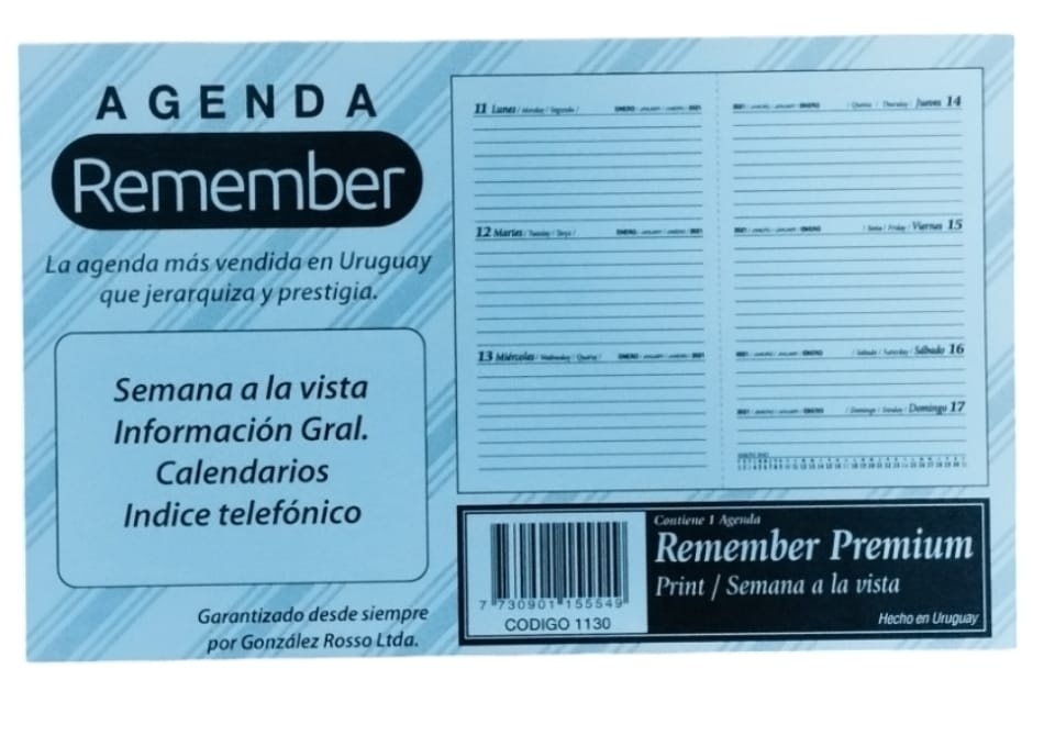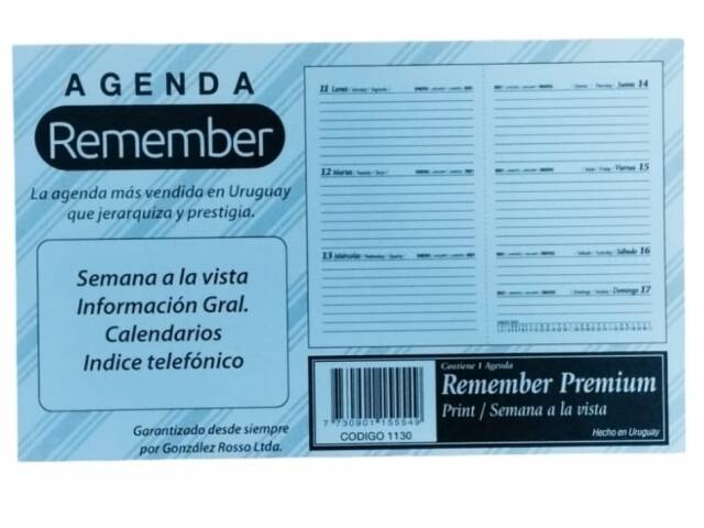 agenda, agenda remember, agenda semana a la vista, agenda semanal, agenda chica, agenda de bolsillo