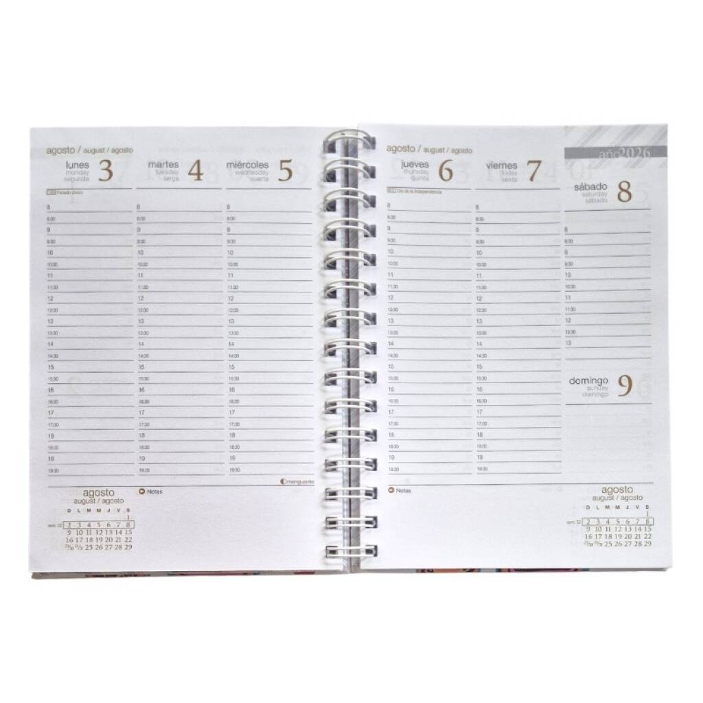 p186 Agenda Remember Forum Print W semana a la vista. Este modelo es con espiral. UTILIZAMOS FOTOS DE OTRO MODELO PARA MOSTRAR LOS DISEÑOS DE TAPAS. Tapas de colores surtidos. Año 2026.