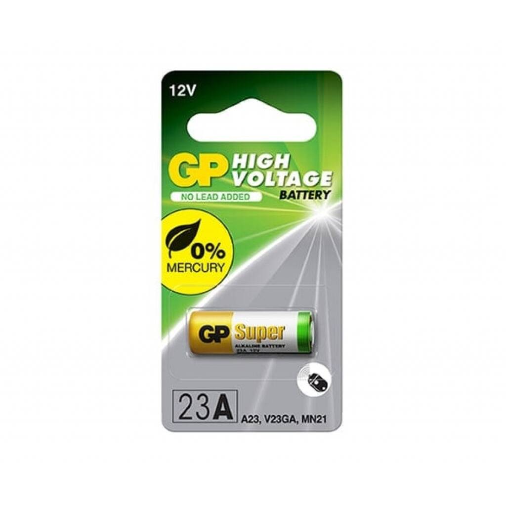 Pila GP 12v 23a alcalina. Tambien la puedes conocer con estos códigos A23, V23GA, MN21. La batería de alto voltaje GP de 23 A es la solución ideal para alimentar dispositivos de entrada, como abridores de puertas de garaje, timbres y cerraduras inalámbricas, así como controles remotos, collares para perros y dispositivos médicos. Está diseñada para ofrecer una potencia máxima de larga duración y estable durante todo el uso, a la par de la tecnología actual de alto consumo energético. Su diseño ofrece protección completa contra fugas con tecnología de sellado seguro, protegiendo su seguridad y la de sus dispositivos.