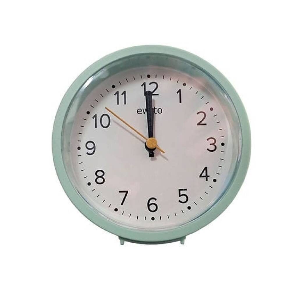 Reloj despertador Ewtto ET-K8866. Maquina de movimiento continuo lo que produce menos ruido de las agujas (sin el molesto tic, tac que se escucha tanto en el silencio). Colores pastel. Diámetro 11 cm.