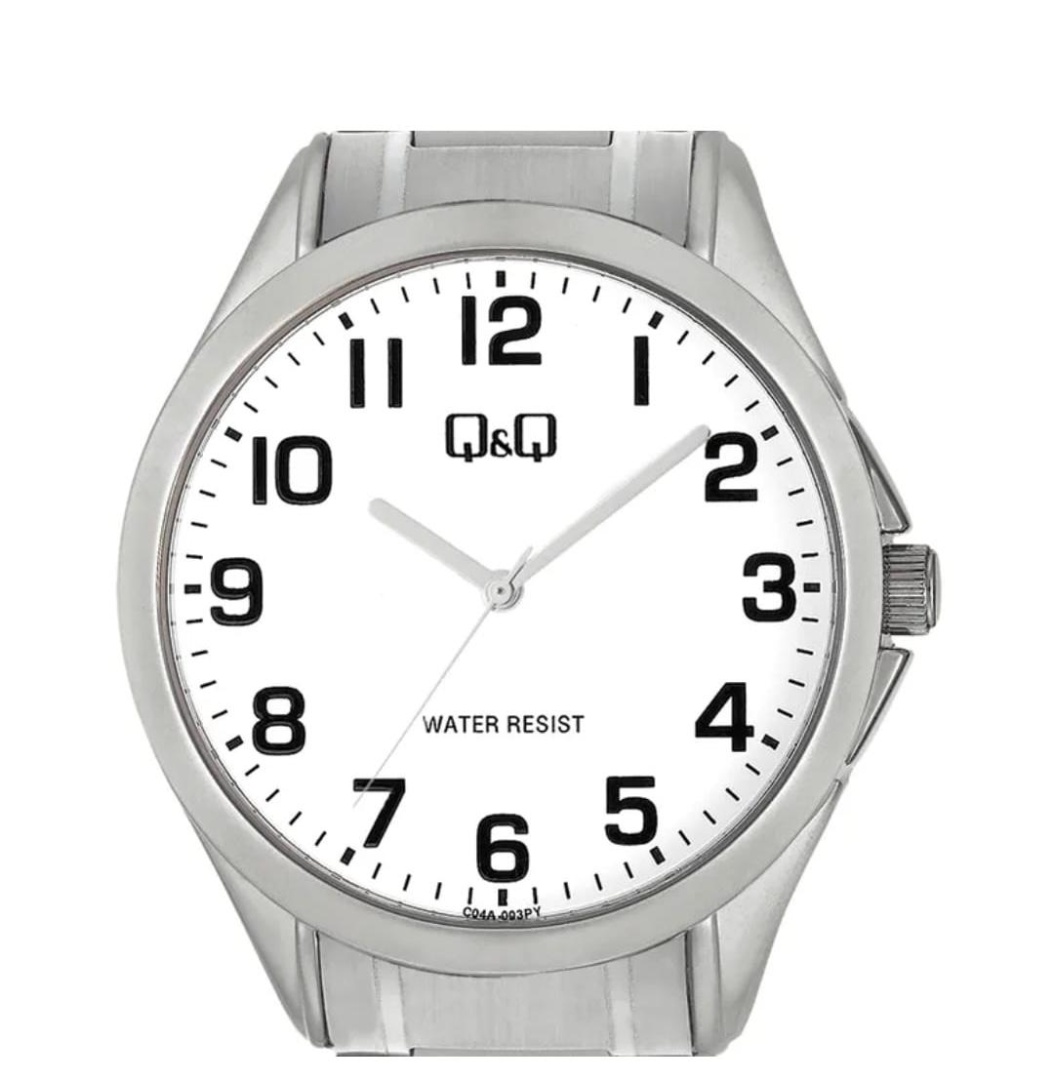 Reloj QyQ metal. C04A003PY. Cierre hebilla ajustable. Diametro 38 mm, espesor 8,8 mm. Peso 73 g. QyQ es la marca económica de Citizen. Garantia de la maquina 6 meses y excluye : roturas por accidentes, golpes, mal trato, malla, cristal, caja, pila. Los relojes NO SON SUMERGIBLES. Resistente al agua 3 bar.