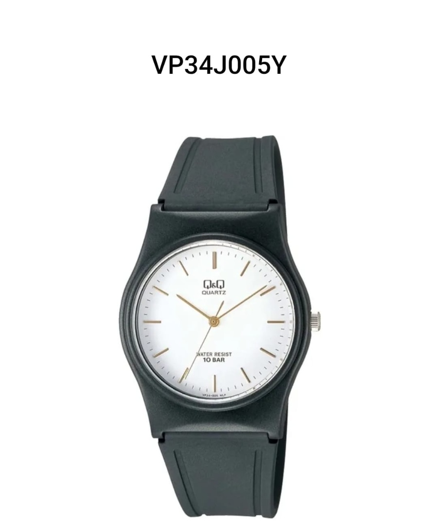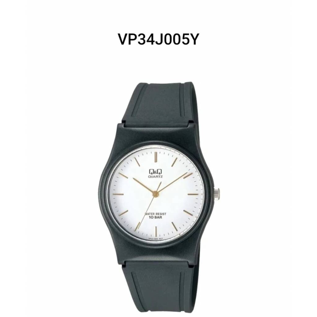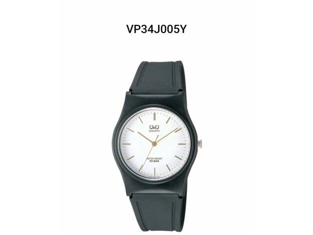 Reloj QyQ PVC negro. VP34J005Y. Diametro 33 mm, espesor 9,05 mm.  QyQ es la marca económica de Citizen. Garantia de la maquina 6 meses y excluye : roturas por accidentes, golpes, mal trato, malla, cristal, caja, pila. Los relojes NO SON SUMERGIBLES. Resistente al agua 10 bar.