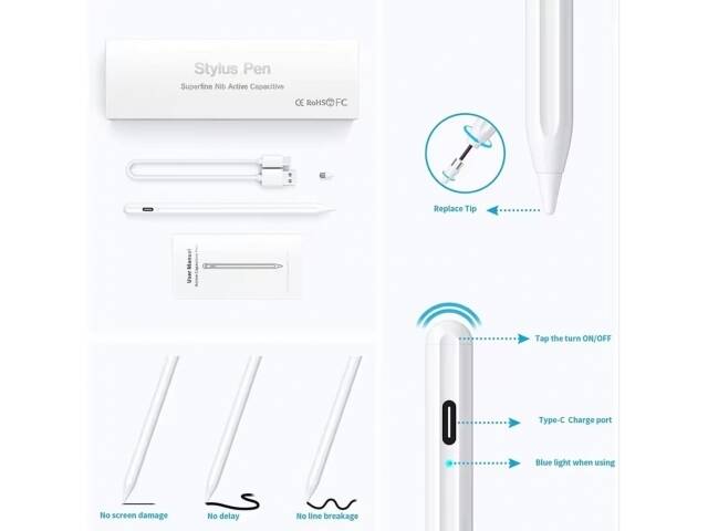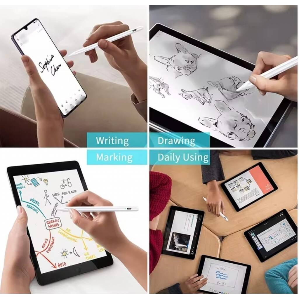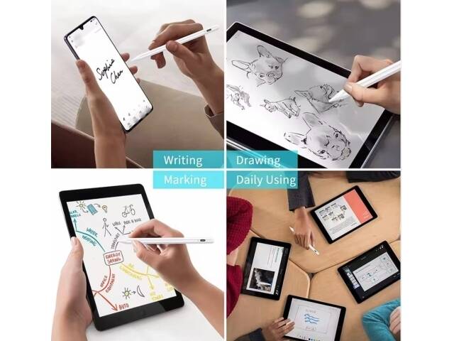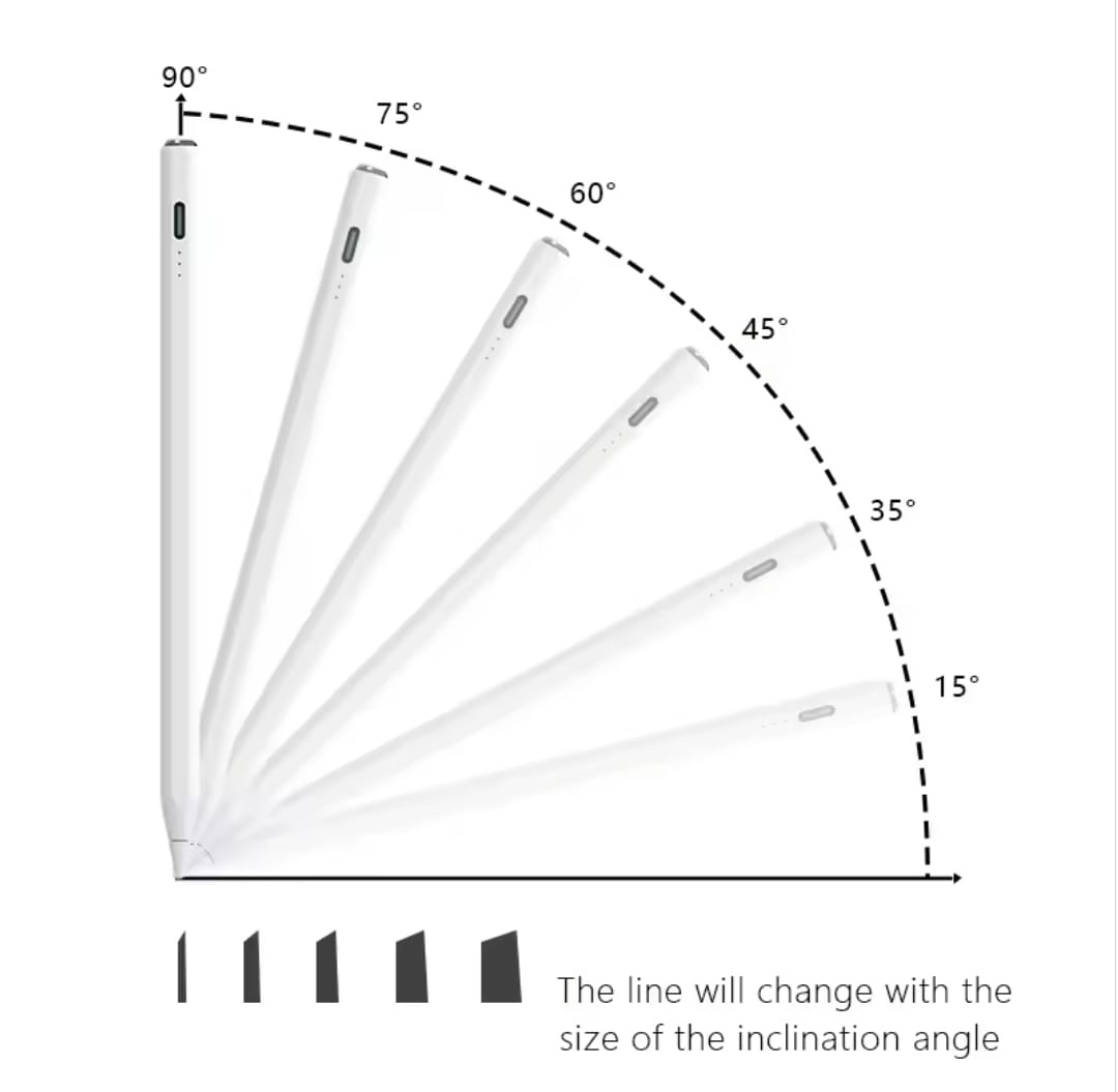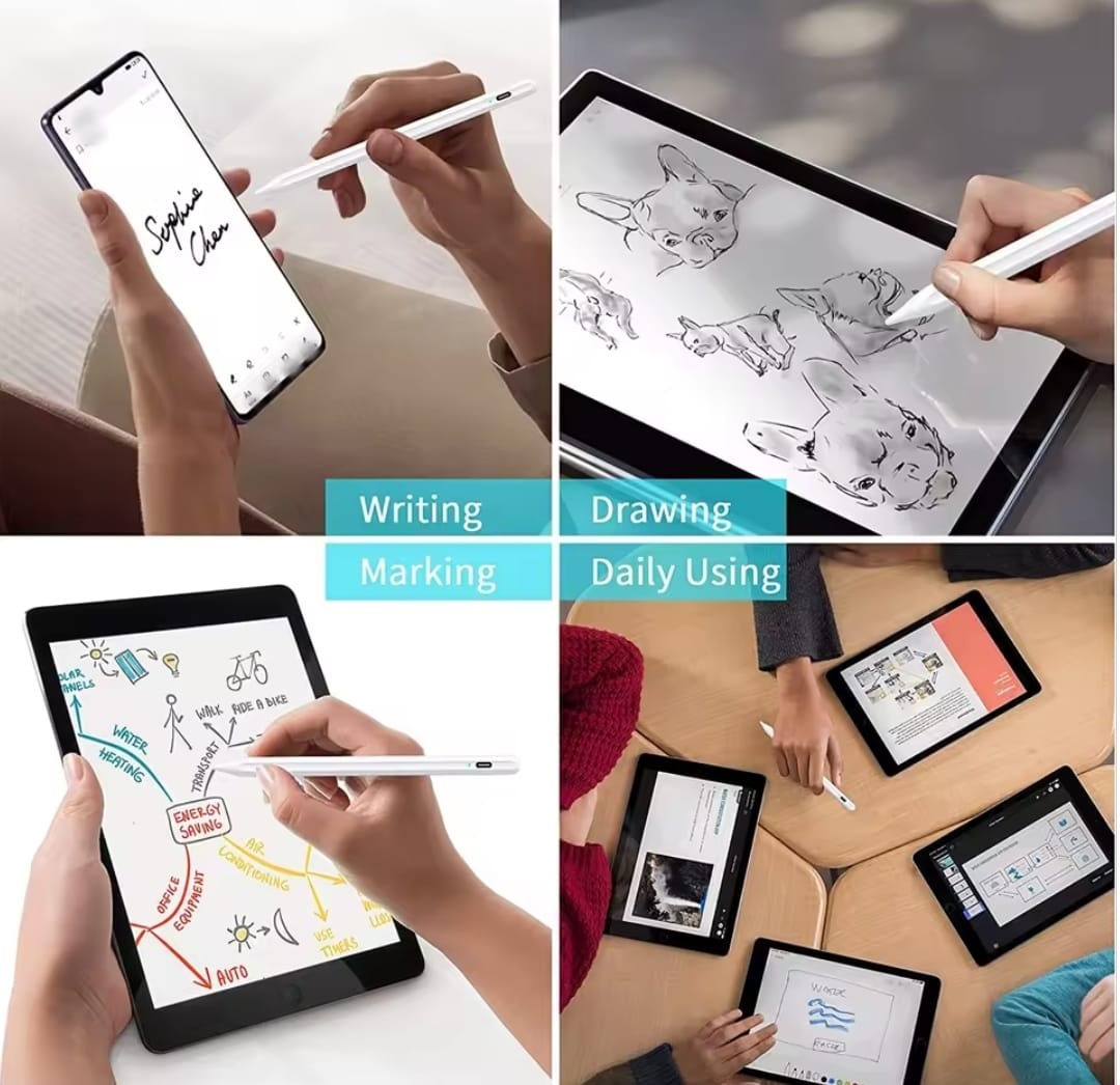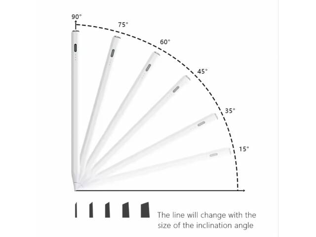 Lápiz táctil activo capacitivo, compatible con IOS, Android, Ipad. Escribe, colorea, pinta, sombrea, lo que tu imaginacion te dicte. Recargable con usb tipo c. Trae cable. Detecta la inclinacion cambiando el grosor del trazo si tu programa lo permite. Carga rápida de 5 minutos rinde 1 hora o 40 minutos 9 horas.
